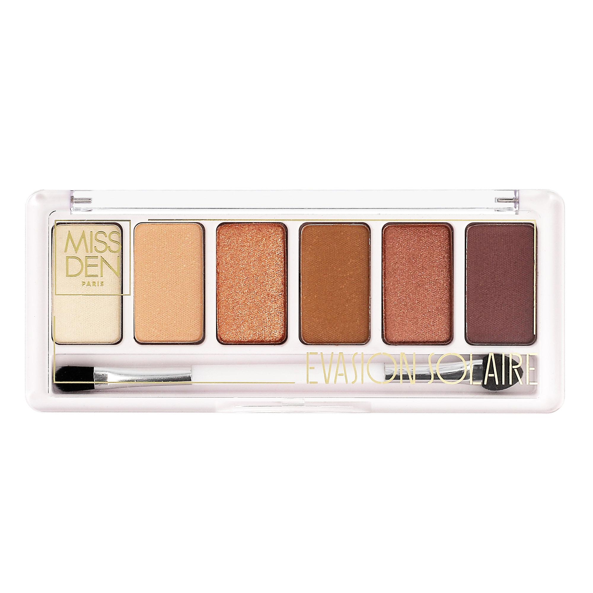 Composée de 6 fards à paupières, la palette Evasion solaire vous invite à l'évasion et à la découverte. Craquez pour ses teintes ultra-pigmentées. Les nuances sont chaleureuses au fini irisé, mat, ou scintillant. Les textures douces et fondantes s'estompent facilement et tiennent sans filer. A utiliser seuls ou à coordonner, laissez libre cours à votre créativité pour créer de multiples looks ! Ultra pratique, l'applicateur double-embout a d'un côté un embout mousse pour estomper et de l'autre, un embout fin pour un tracé précis façon liner.