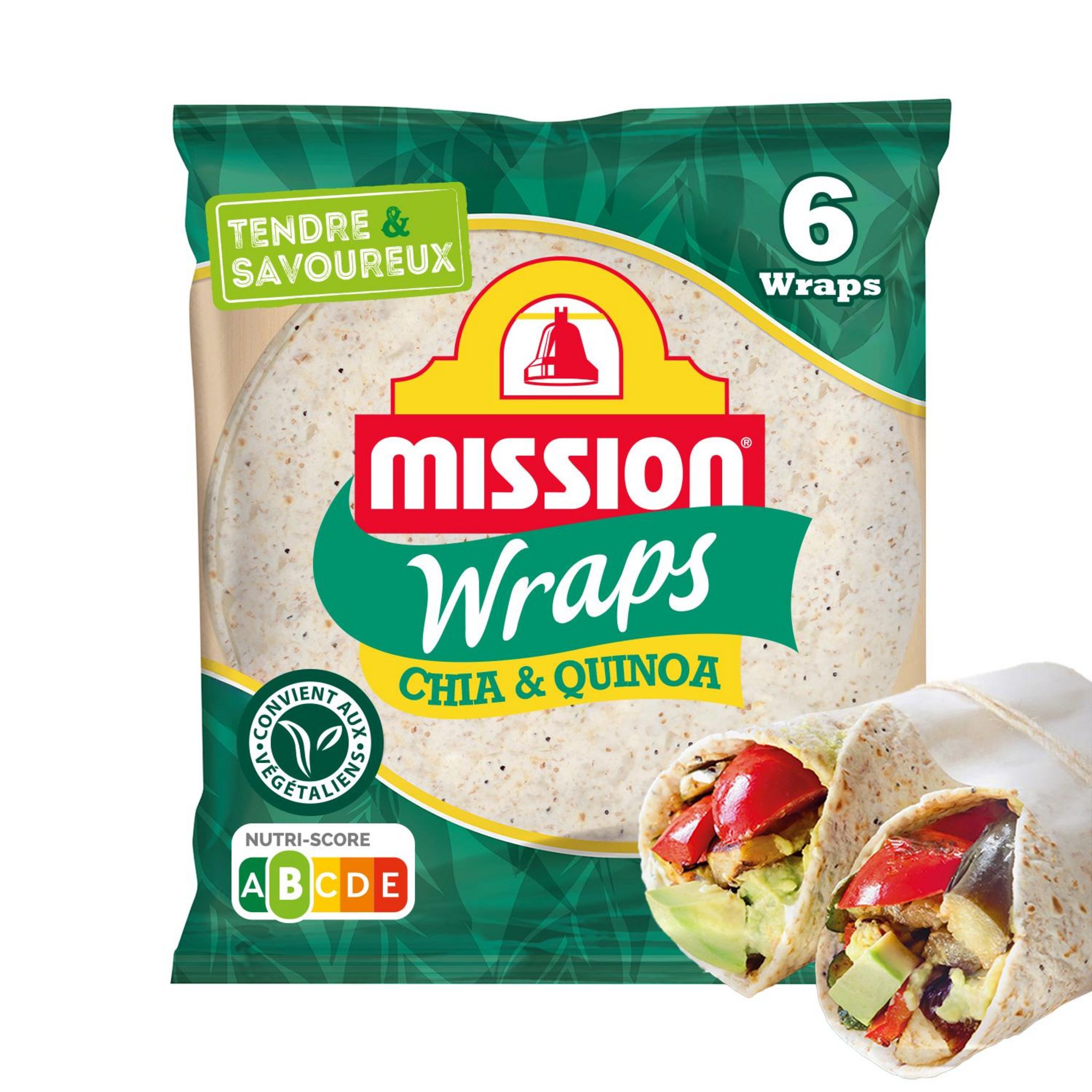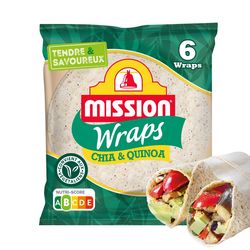 Au temps des Aztèques, Incas et Mayas, les graines de Quinoa et Chia étaient utilisées dans de nombreux plats traditionnels. Découvrez le wrap Quinoa & Chia Mission, d'une fraîcheur et d'un moelleux incomparables grâce à leur recette unique. Savoureux et souples, ils peuvent donc se consommer aussi bien chauds que froids, pour réaliser préparations salées et même sucrées.