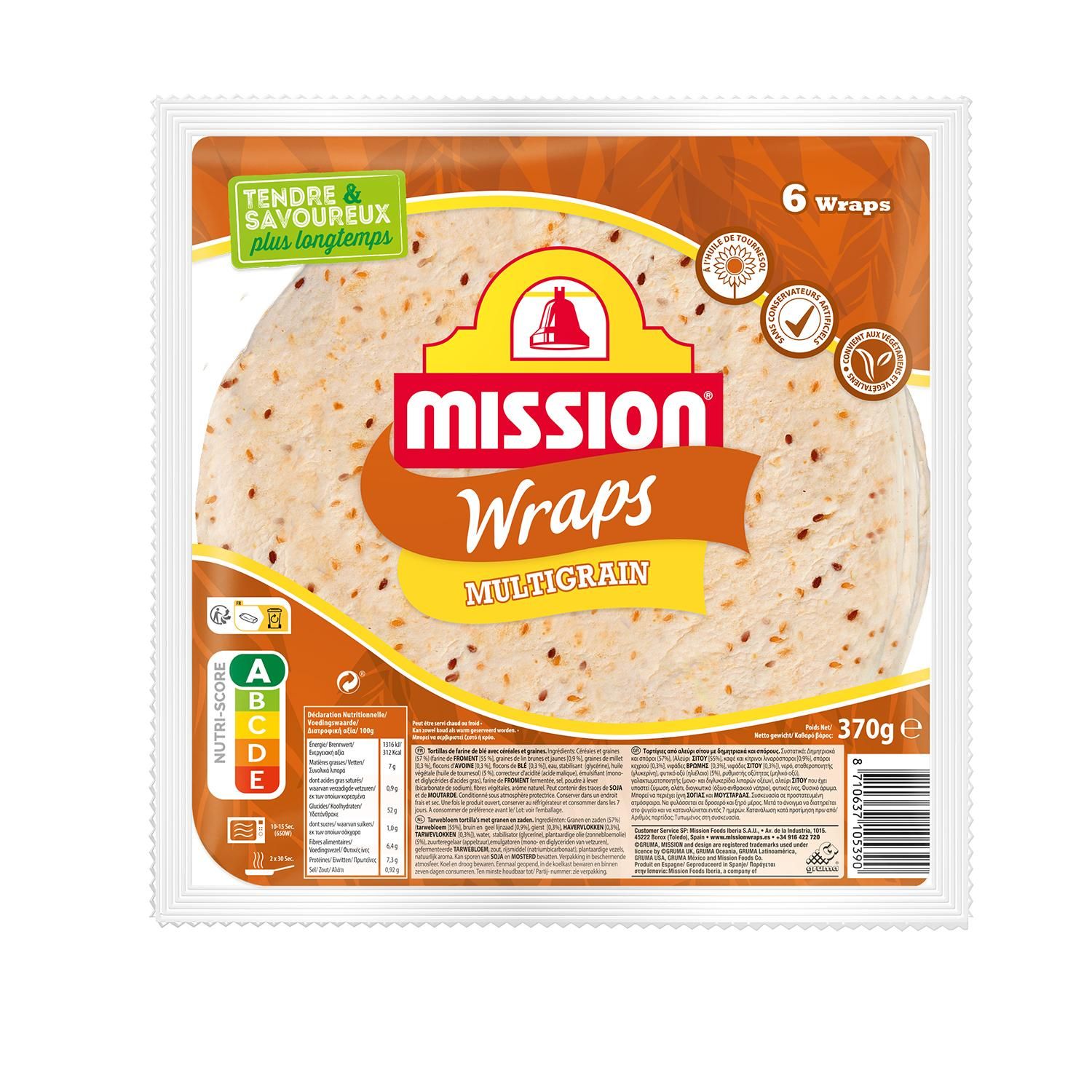 Les wraps multigrains Mission aux délicieuses graines de lin sont tendres et savoureux grâce à leur recette originale. Savoureux et souples, ils peuvent donc se consommer aussi bien chauds que froids, pour réaliser préparations salées et même sucrées. Parfaits pour tous les moments de la journée : que ce soit au petit déjeuner, au déjeuner, à l'apéritif ou au souper.