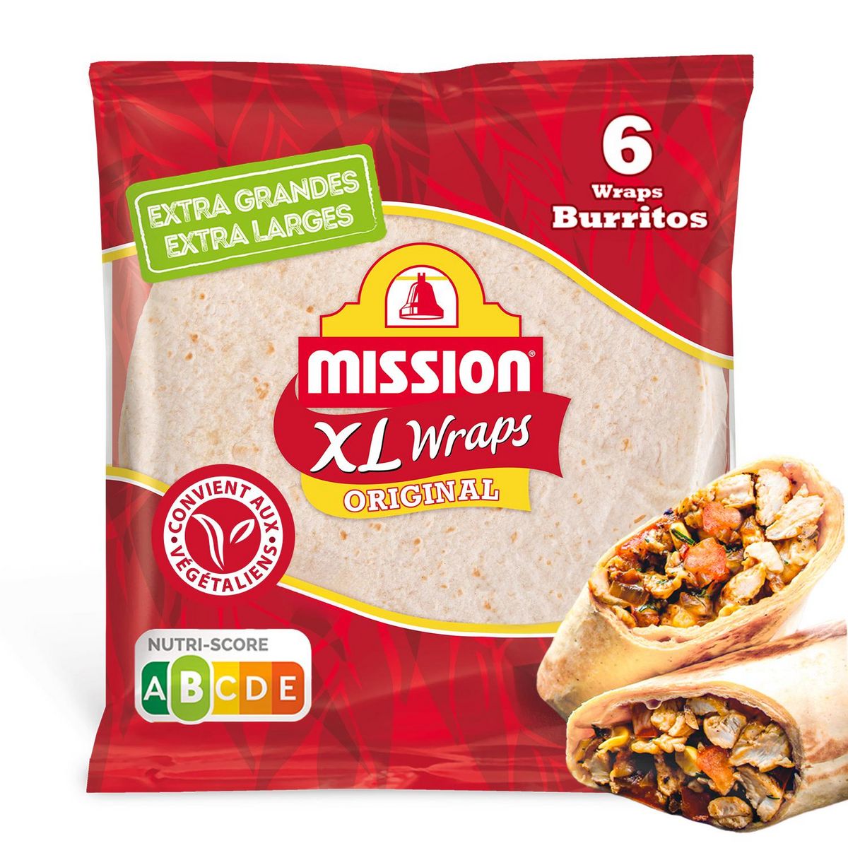 Avec son diamètre de 30 cm, le wrap XL Blé nature MISSION est idéal pour les gourmands à la recherche d'une offre de wrap différenciante : french tacos, enchiladas, roulés apéritifs, etc. Il est noté Nutri-score B et ne contient pas d'huile de palme.