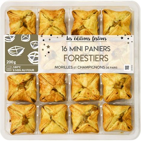 Ingrédients : Pâte feuilletée 70,5% (farine de BLE, BEURRE, eau, sel), garniture 23,5% (LAIT demi-écrémé, CREME liquide, champignons de Paris 3,3% préparation pour sauce aux champignons 1,6% (eau, CREME en poudre, graisse de poulet (dont antioxydant : extrait de romarin), champignons 0,2% (morilles 0,1% ; bolets, pleurotes, champignons noirs, Cèpes), LAIT entier en poudre, sel, arôme naturel de champignon avec autres arômes naturels, oignon, arômes naturels, dextrose fermenté, maltodextrine, jus concentré de carotte, farine de lin, jus concentré de poireau, poivre blanc, extrait de rhum, zeste de citron, huile de tournesol), amidon modifié de mais, morille 0,5%, échalotes, BEURRE, épaississant : méthylcellulose, sel, poivre blanc), dorure (jaune d'OEUF, LAIT demi-écrémé).Traces éventuelles de crustacés, poissons, mollusques, fruits à coque, soja, céleri, moutarde, graines de sésame et autres céréales contenant du gluten.