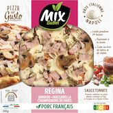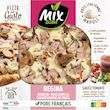 Mix vous a préparé une délicieuse pizza avec une pâte Napoli aux saveurs inimitables et une sauce à la crème cuisinée ! Associée à de généreuses tranches de raclette mélangées à des lardons, des oignons et de la mozzarella, un vrai régal à partager !