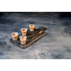 Verrines garnies de tomates, de noix de Saint-Jacques*, de fromage et de basilic, aromatisées.