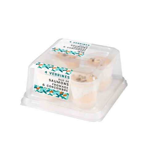 Ingrédients : fromage salé 17,3% (fromage, sel), eau, huile de colza, saumon Atlantique Salmo salar cuit 10,4%, colin d’Alaska cuit 10,4%, lait demi-écrémé, concombre 8,8%, saumon fumé 4,6% (saumon Atlantique Salmo salar, sel), purée de tomates double concentré, échalotes, plantes aromatiques, jus de citron concentré, fibre de lin, fibre de racine de chicorée, graines de sésame, sel, jus de carotte concentré, sucre. Traces éventuelles de gluten, crustacés, oeuf, soja, fruits à coque, céleri, moutarde et mollusques.En raison de la présence de saumon, malgré toutes les précautions prises prises pour la préparation de ce produit, il se peut qu'exceptionnellement une arête subsiste dans le produit. Merci de vérifier les produits destinés aux jeunes enfants.