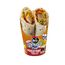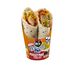 Wrap trip composé de poulet français, de cheddar, salade et oignons frits et d'une sauce barbecue.