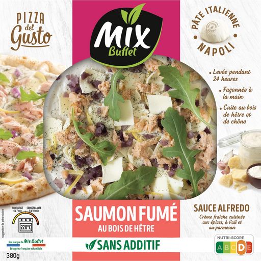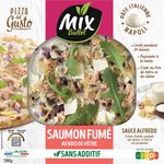 Mix vous a préparé une délicieuse pizza avec une pâte Napoli aux saveurs inimitables et une sauce à la crème cuisinée ! Associée à du saumon fumé et à la douceur acidulée des zestes de citron, un vrai régal à partager !