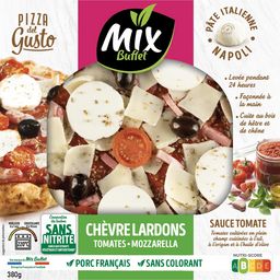 Mix vous a préparé une délicieuse pizza avec une pâte Napoli aux saveurs inimitables et une sauce tomate cuisinée ! Associée à du chèvre fondant et des lardons fumés, un vrai régal à partager !