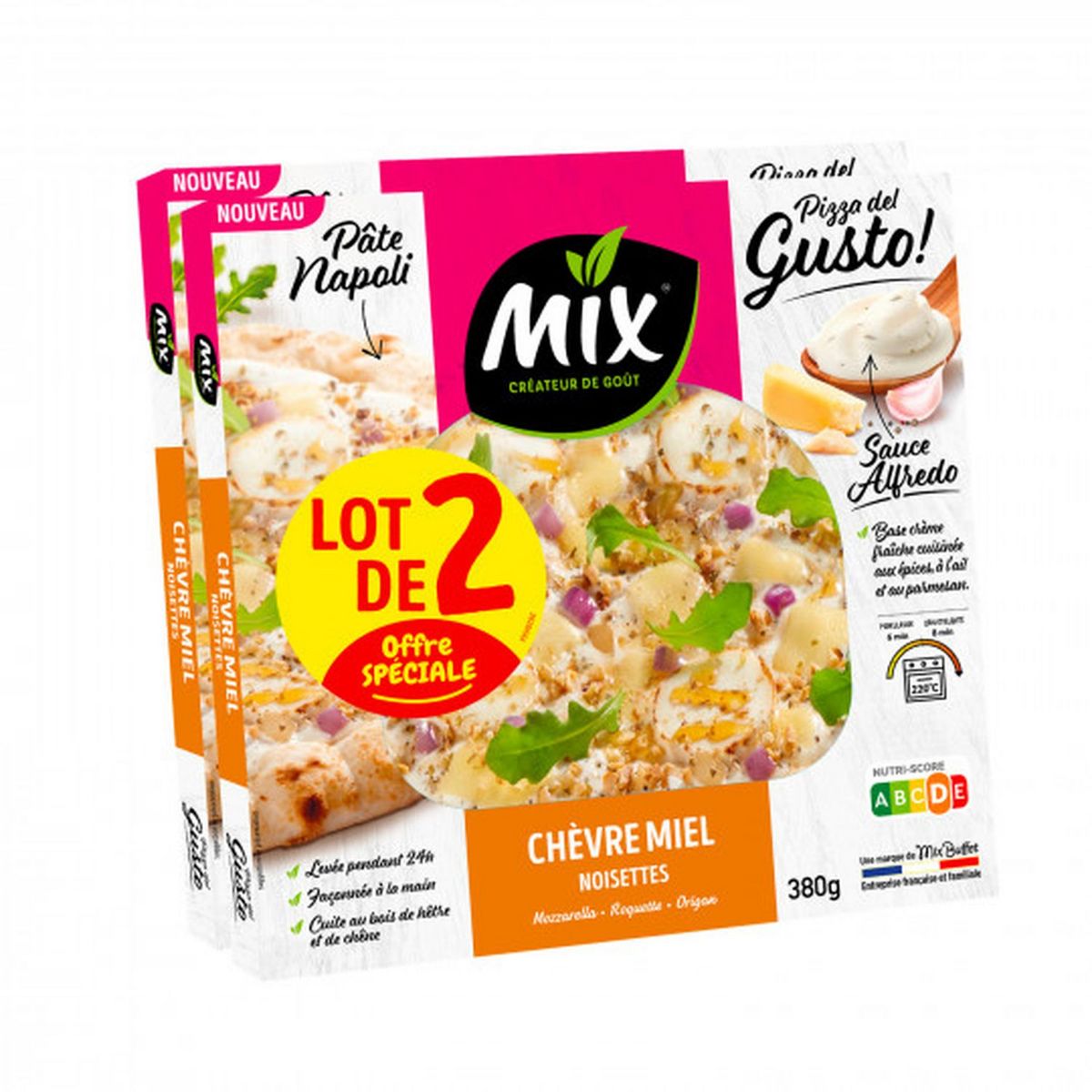 Ingrédients : SELECTION DES MEILLEURS INGREDIENTS :200 g de Pâte Napoli (52,6%) : pâte 50,5% (farine de blé, eau, huile d'olive vierge extra, levure, sel), huile de tournesol.110 g de Garniture d’Ingrédients savoureux (29%) : mozzarella 14%, fromage de chèvre 7,4%, oignons rouges 3,9%, miel d’acacia 1,3%, noisettes grillées 1,3%, roquette, origan.70 g de Sauce à la crème cuisinée (18,4%) : eau, crème fraîche 6,3%, vin blanc 1,2%, Parmigiano reggiano 0,9%, échalotes, ail 0,4%, fécule de manioc, vinaigre balsamique (vinaigre de vin, moût de raisin cuit), câpres fines au vinaigre 0,2% (câpres 0,1%, eau, vinaigre d’alcool, sel), sel, moutarde de Dijon (eau, graines de moutarde, vinaigre d’alcool, sel), épices 0,03%. Traces éventuelles de soja, oeuf, poisson, céleri, autres fruits à coques et autres céréales contenant du gluten.