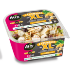 Salade composée de pâtes alimentaires cuisinées, de salades en mélange, de scamorza fumée, de mozzarella, de Gorgonzola et de fromage à pâte pressée cuite, accompagnée d’une sauce vinaigrette au vinaigre balsamique.