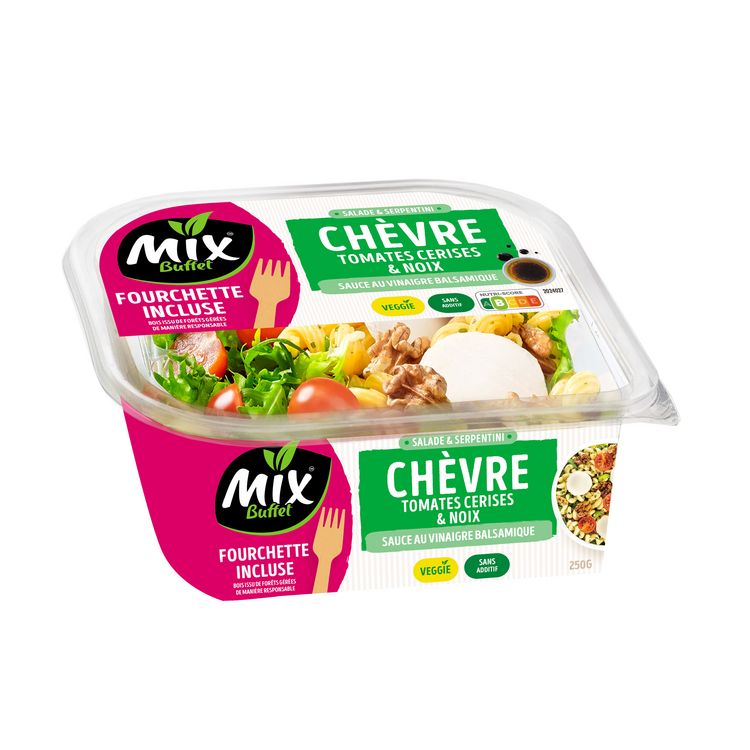 Mix vous a préparé une salade bol incontournable avec des tranches de chèvre fondantes et des noix croquantes pour plus de gourmandise et de plaisir lors de vos pauses.
