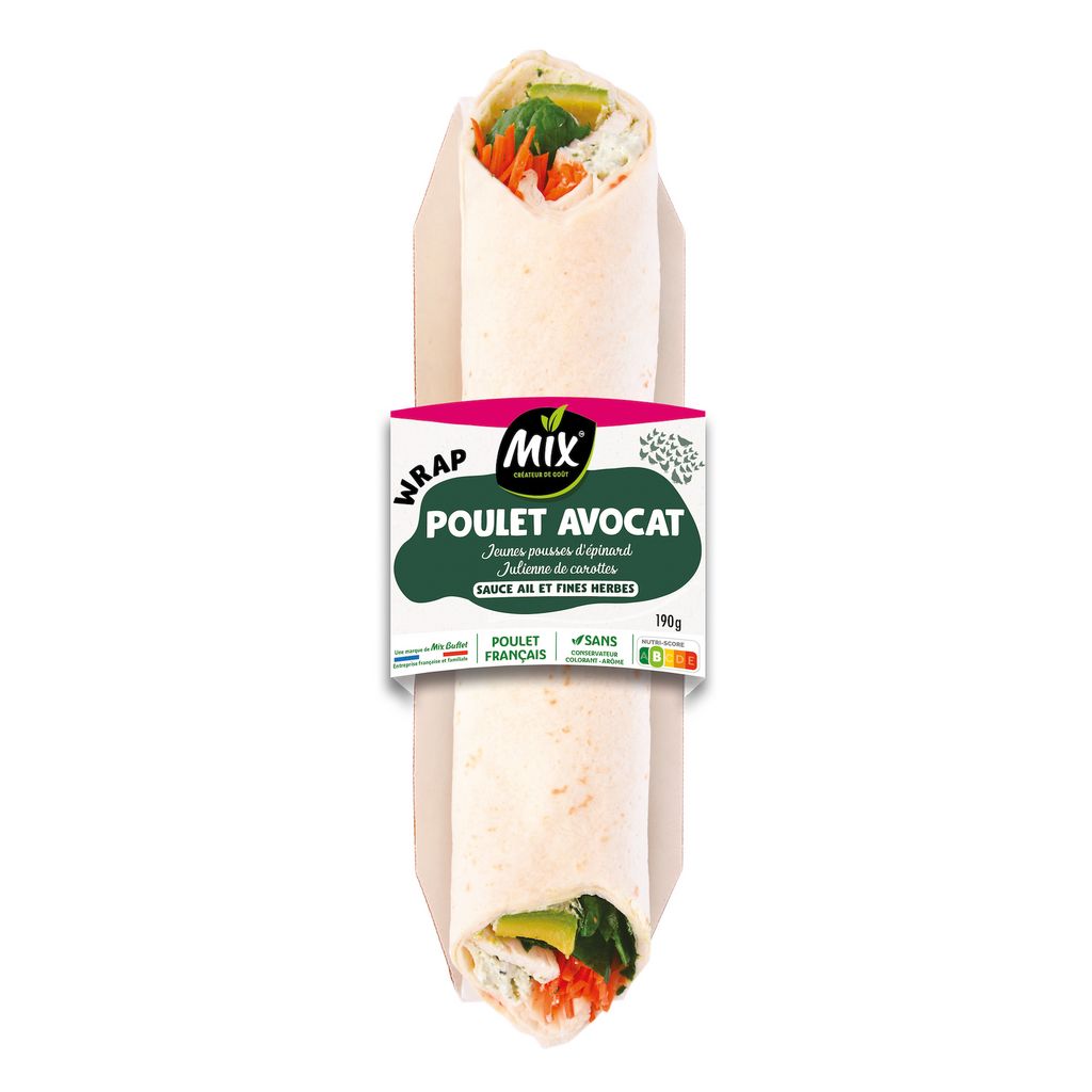 Mix vous a préparé un wrap délicieux avec des filets de poulet, de l’avocat fondant et des carottes délicieusement nappés d’une sauce ail et fines herbes. Le tout délicieusement enroulé dans une galette de blé moelleuse pour plus de plaisir lors de vos pauses.