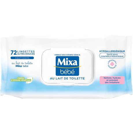 Mixa Bébé Lingettes Au Lait De Toilette 72 unité(s) Lingettes Ultra-Douces au Lait de Toilette Mixa Bébé pour nettoyer efficacement et sans rinçage les fesses de bébé. La peau du nourrisson retrouve ainsi douceur, souplesse et confort.
