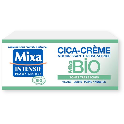 Mixa Intensif Peux Sèches Crème Bio Visage, Corps et Mains 50 ml Au quotidien, les peaux sèches et sensibles peuvent être sujettes à des sécheresses sévères: micro-gerçures, desquamations, inconforts... Découvrez la CICA-CREME certifiée BIO: le nouveau soin nourrissant réparateur de Mixa. Dès l'application, les sensations d'inconforts liés à la sécheresse sont apaisées. La peau retrouve toute sa souplesse et sa douceur.