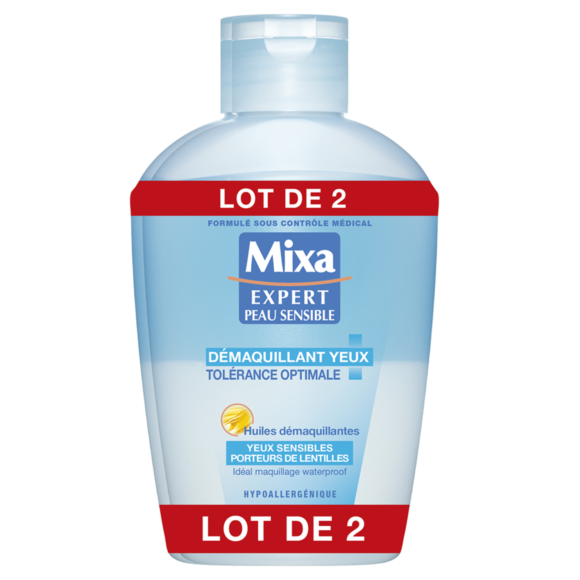 Mixa Expert Peau Sensible 250 ml Démaquillant aux huiles démaquillantes pour yeux sensibles et porteurs de lentilles. Résultat: Vos yeux sensibles sont parfaitement démaquillés, votre contour de l'œil parfaitement respecté.