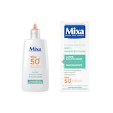 Fluide quotidien Mixa Anti-UV & Anti-Imperfections, haute protection SPF 50+, pour les peaux à imperfections. Enrichi en Acide Salicylique, connu pour réduire l'excès de sébum, resserrer les pores et réduire l'apparition des boutons + Niacinamide, connu pour réduire les imperfections et apaiser les sensations d'inconfort de la peau. Avec une haute protection SPF50+ pour protéger contre les dommages causés par le soleil et l'hyperpigmentation des marques post-acné par les UV. Cliniquement prouvé pour réduire les boutons de -66%*, effet matifiant et anti-brillance 12heures**. Flacon 40ml. *Test clinique sur 34 sujets pendant 56 jours. **Test consommateur sur 165 volontaires. Résultats cliniquement prouvés : Après 1 utilisation : effet matifiant anti-brillance 12 heures*. Protège des dommages quotidiens causés par les UV. Après 8 semaines : -66% de boutons**, -32% de marques post-acné** *Test consommateur sur 165 volontaires. **Test clinique sur 34 sujets pendant 56 jours, les ré