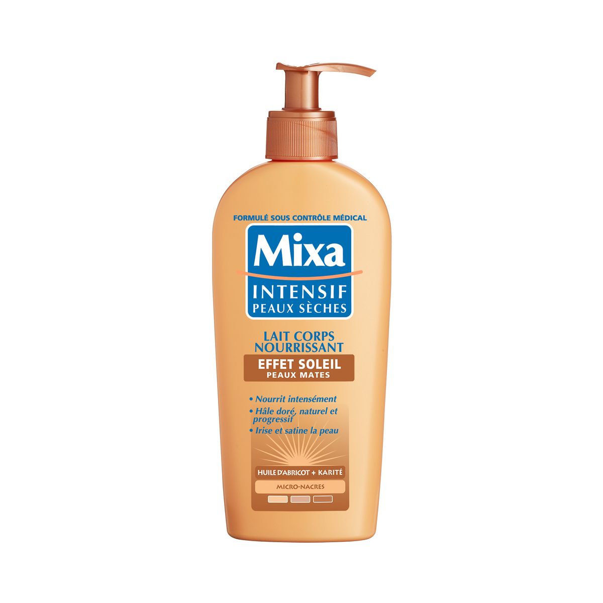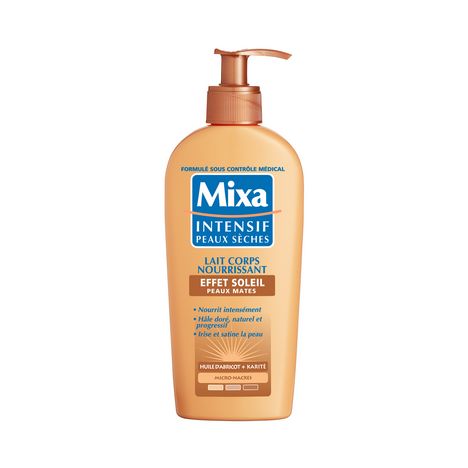 Le Lait Corps Nourrissant Effet Soleil - Peaux Normales - de Mixa pour sublimer les peaux sèches dès la 1ère application et leur apporter un hâle léger et naturel. Les peaux sèches sont efficacement nourries et sublimées. Progressivement, la peau rayonne d'un hâle léger et naturel.