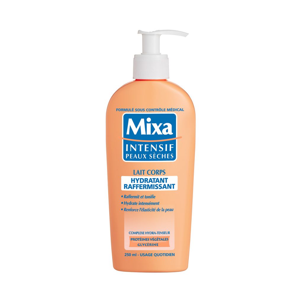 Lait Corps Hydratant Raffermissant de Mixa, pour hydrater, tonifier et raffermir immédiatement la peau. Formulé et testé sous contrôle médical.