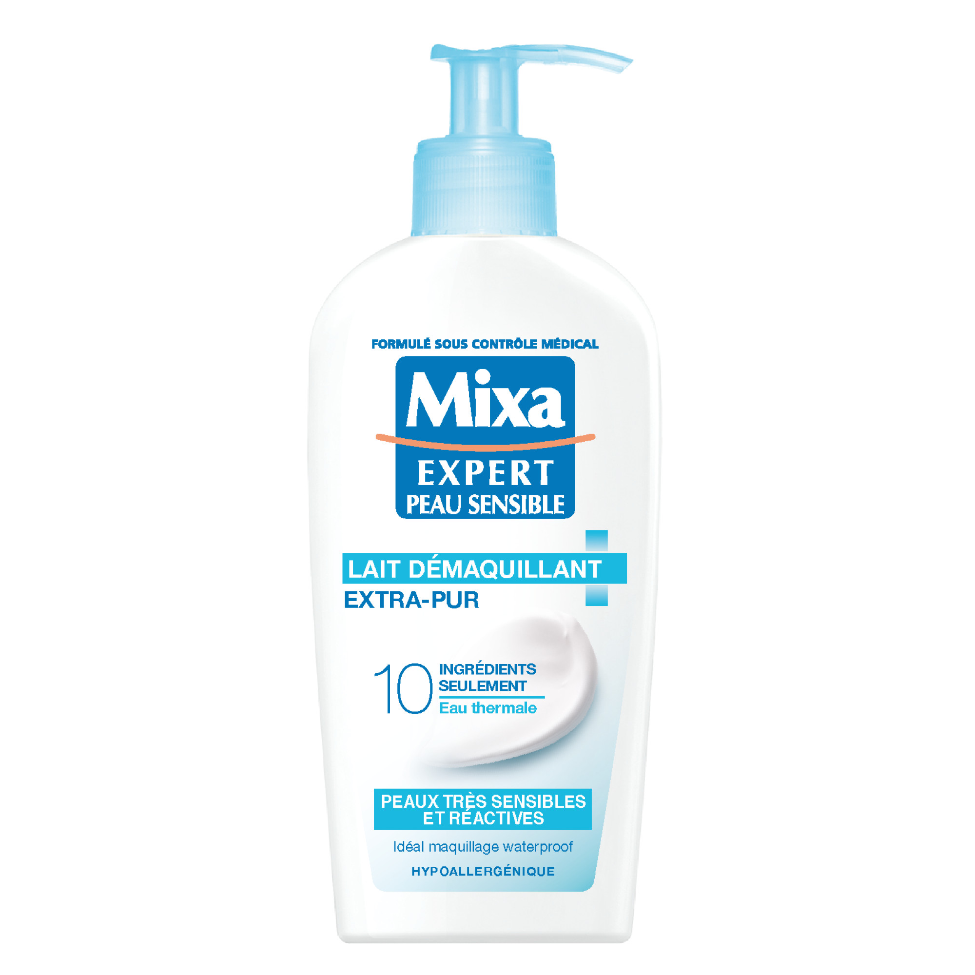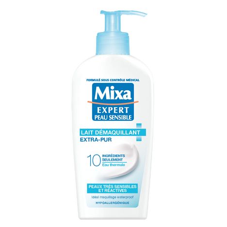 Le premier lait Démaquillant Extra-pur Mixa qui nettoie et démaquille le visage et les yeux dans le plus grand respect. Parfaitement démaquillée et nettoyée, la peau très sensible et réactive est immédiatement apaisée, durablement confortable.