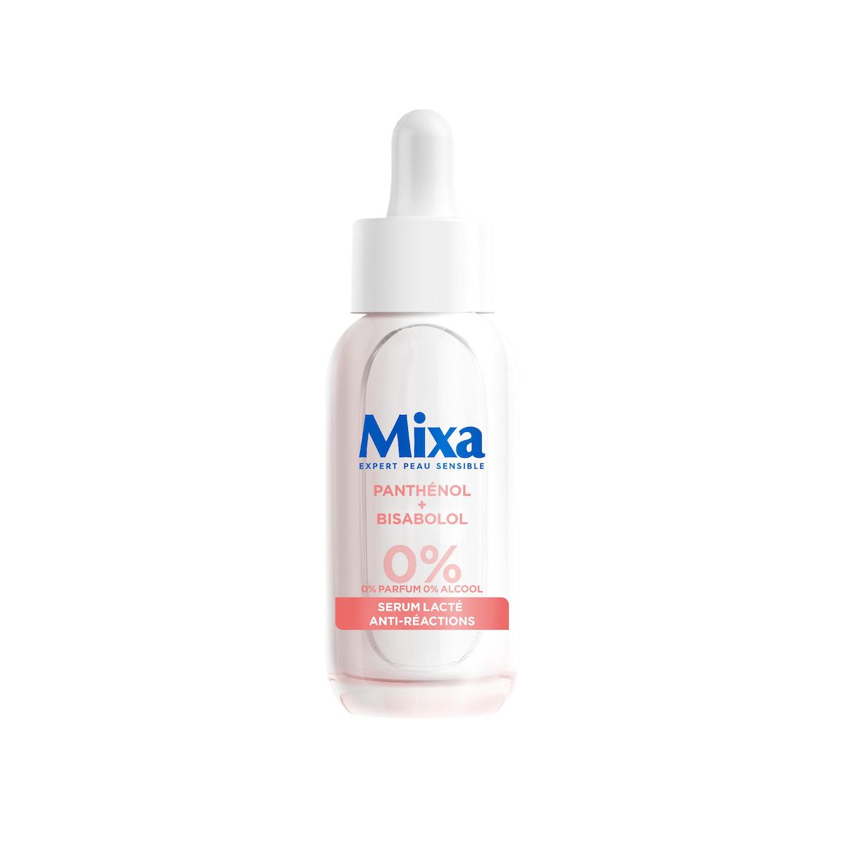 NOUVEAU : Le sérum Anti-Réactions Mixa pour les peaux réactives. Nouvelle texture ultra-sensorielle pour un effet d'apaisement immédiat. Cliniquement prouvé, il réduit la réactivité de la peau (rougeurs, démangeaisons, sècheresses)*. -47% de réactions cutanées en 4 semaines. ** Hypoallergénique. Formulé sous contrôle médical. Peut être combiné avec les autres sérums de la gamme Mixa. LE MIX PARFAIT DE 2 ACTIFS COMPLÉMENTAIRES : Le Panthénol, une dérivée de la vitamine B5 connue pour apaiser instantanément et réduire les sensations d'irritations. Le Bisabobol, actif d'origine naturel, choisit pour ses propriétés apaisantes pour aider à réduire les rougeurs et les sensations d'irritation. *Test consommateurs sur 43,47, 52 personnes. **Test clinique sur 43 sujets après 4 semaines. La réactivité de la peau est réduite.
