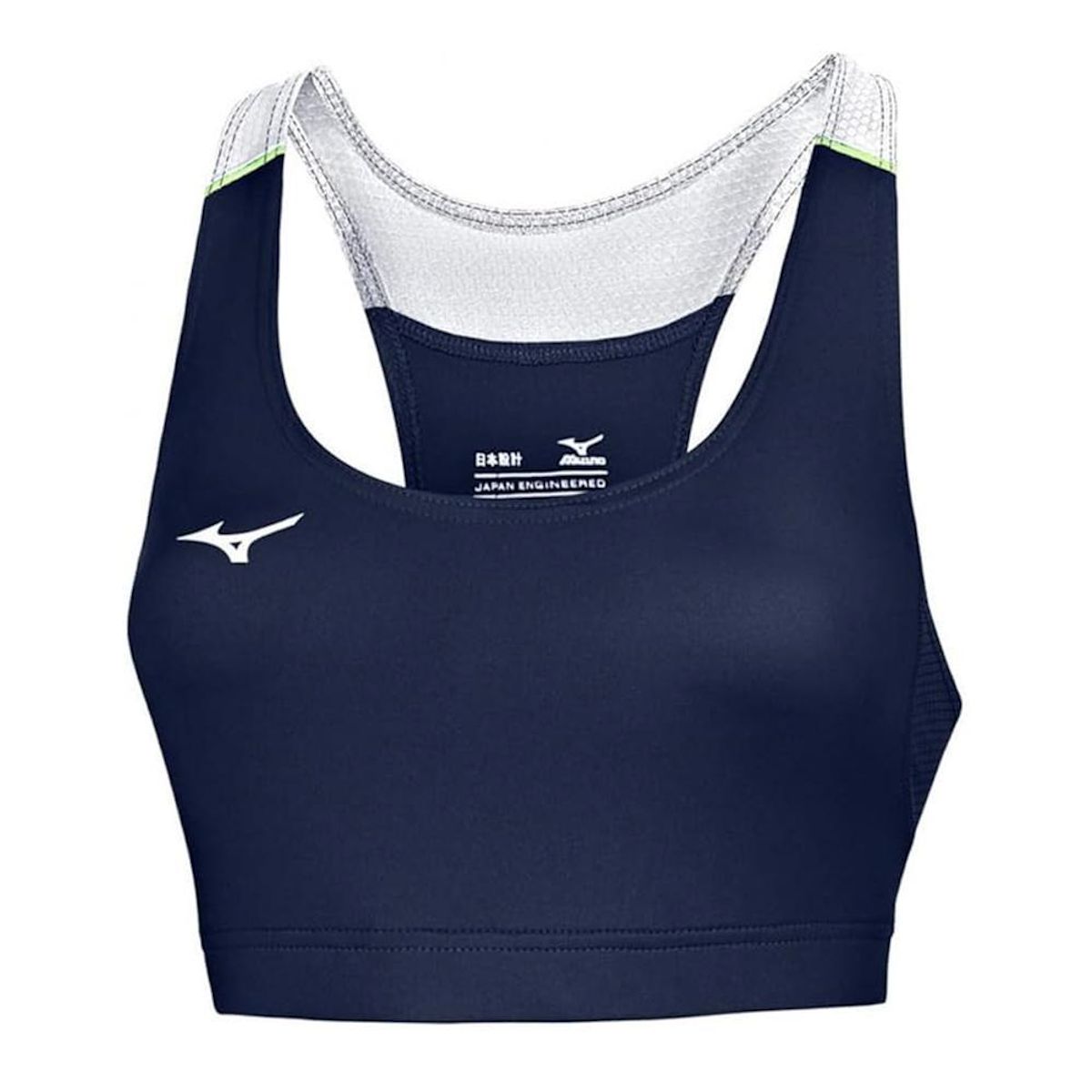 Optez pour cette brassière Mizuno- Coloris : Marine- Col rond- Composition : 88% polyester, 12% spandex- Tissu léger, élastique et respirant- Empiècement latéraux en Mesh Jacquard pour une meilleure liberté de mouvement- Détails réflectifs pour une meilleure visibilité