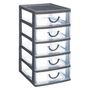 Informations Techniques : Dimensions : L. 12,8 x P. 15,8 x H. 25,6 cm Matière : Polypropylène Spécificités : Pratique & astucieux 5 Tiroirs coulissants Poids : 0,307 kg Couleur : Gris