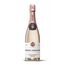 Robe rose pâle rehaussée par une bulle fine et régulière. Les notes d'agrumes et de petits fruits rouges se marient élégamment pour former un bouquet riche et délicat.