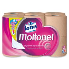 Papier toilette LOTUS® Moltonel® Couleur AQUA TUBE™ 3 épaisseurs 12 rouleaux. Avec sa triple épaisseur et ses coussinets hyper absorbants, le papier toilette Lotus Moltonel® vous offre une propreté parfaite, en utilisant moins de feuilles qu’avec un papier toilette ordinaire. Entre confort et efficacité, il n’y a pas à choisir : c’est le papier toilette Lotus Moltonel Aux extraits de lotus, symbole de bien-être et de douceur.