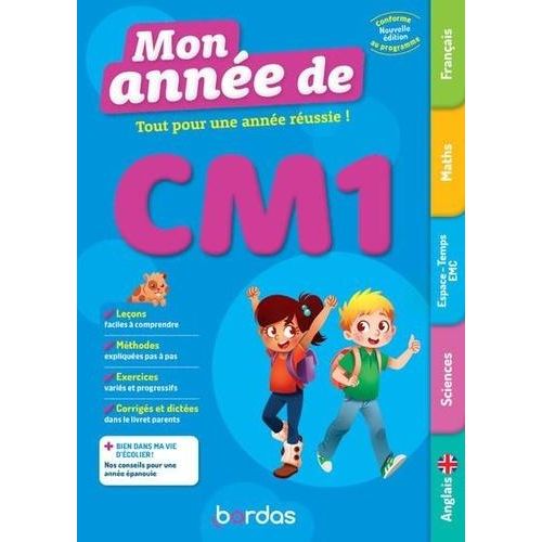 Le tout-en-un qui accompagne votre enfant tout au long de l'année scolaire pour l'aider à réussir. Toutes les matières de l'année de CM1 en un seul ouvrage ! Mon année de CM1 permet de réviser et de s'entraîner en Français, Maths, Histoire-géographie et EMC (Enseignement Moral et Civique), Sciences et technologie et Anglais. Chaque notion au programme est traitée sur 2 pages en 3 étapes : Je retiens : une leçon facile à comprendre et à mémoriser Je sais faire : la méthode pour réussir les exercices expliquée pas à pas Je m'entraine : des exercices variés pour s'entraîner et progresser En complément, une rubrique Bien dans ma vie d'écolier ! propose des conseils et des activités pour bien vivre son année de CM1 : des méditations pour apprendre à gérer son stress et à se concentrer, des tutos pour bien faire son cartable ou avoir une bonne position de travail Des pages d'évaluations sont proposées en français, en maths. L'ouvrage propose également des mémos présentant les 11 verbes à connaître, les tables de multiplication, la carte du monde et une frise historique de la préhistoire à nos jours En cadeaux : 12 messages rigolos à accrocher à sa porte En + : Un livret parents détachable avec : 32 dictées progressives en lien avec chaque notion de français Le programme du CM1 expliqué Les corrigés de tous les exercices