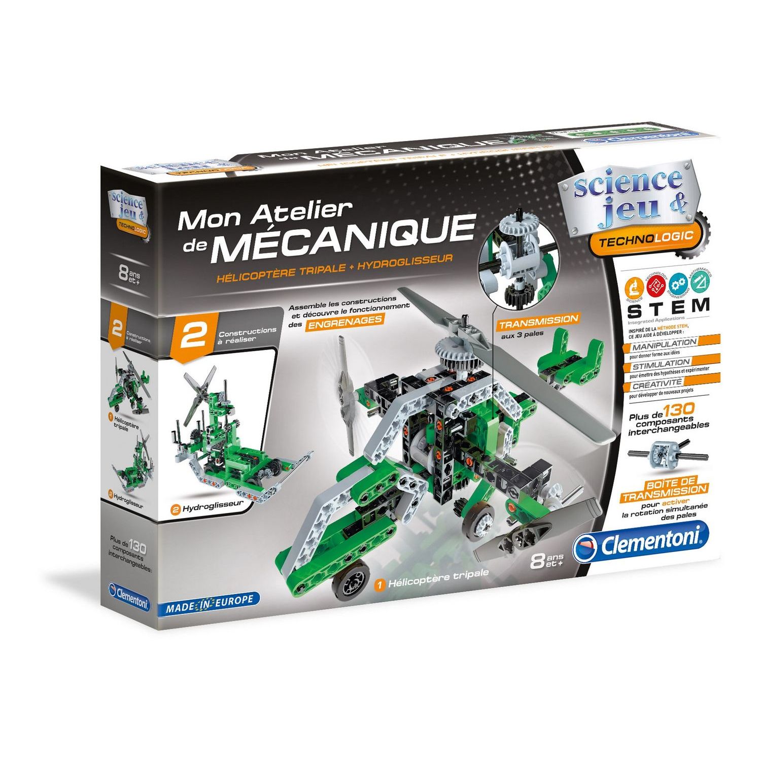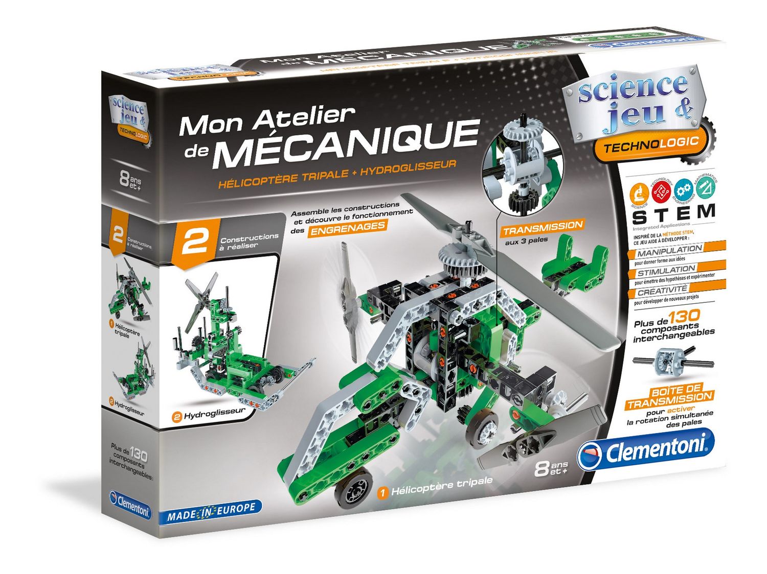 En savoir +Avec ton atelier de mécanique, construis un hélicoptère et un hydroglisseur en intégrant leur système de transmission, avec plus de 130 composants : boîte de vitesses, engrenages, hélices...