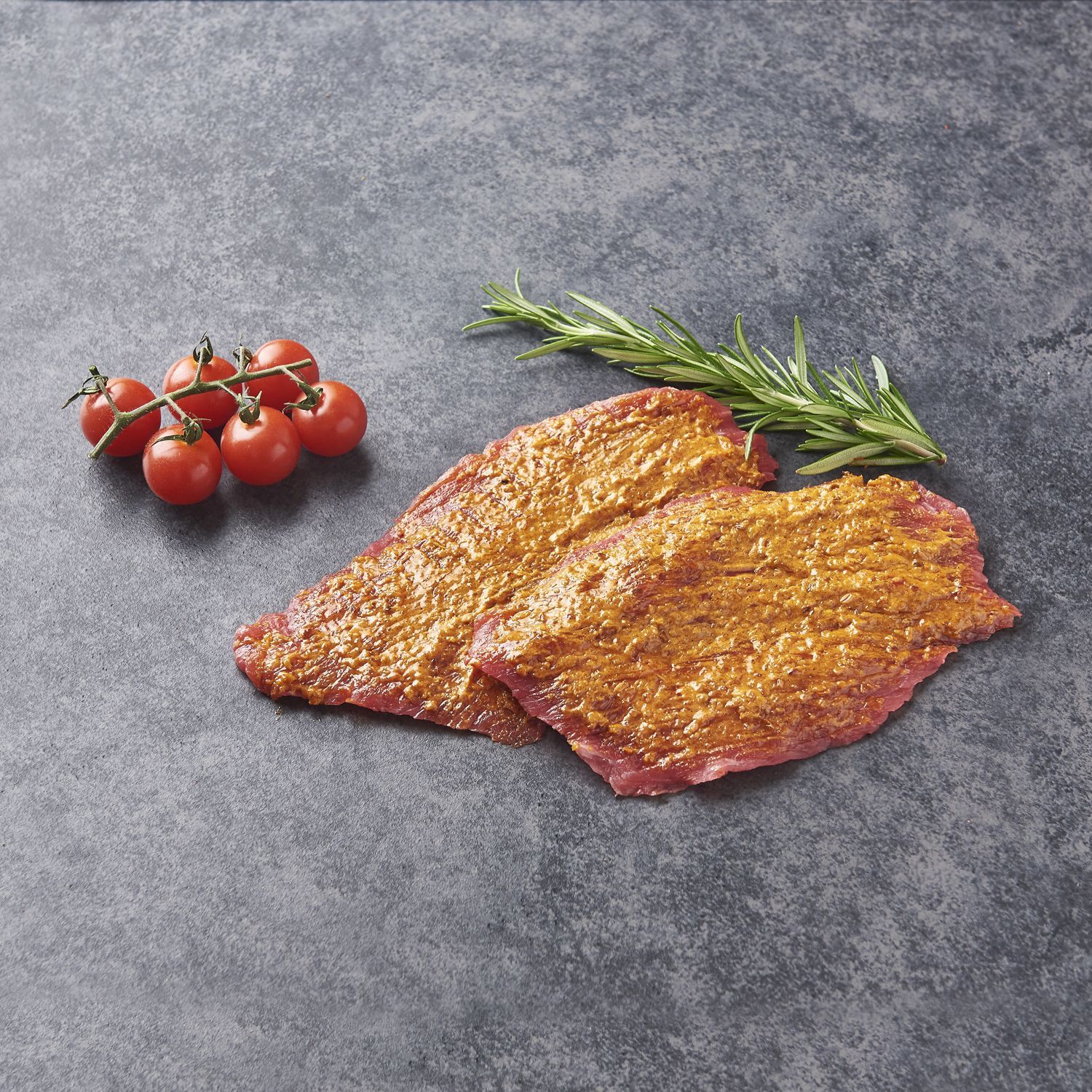 bavette de flanchet 90,9% (Origine France), marinade à l'échalote 9,1% (huile végétale de colza, arômes naturels, plantes aromatiques (dont échalote (14,0%)), sel, épices).