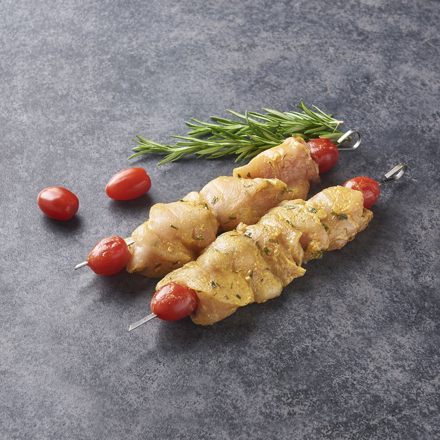 Brochette de viande de poulet à la marinade gingembre et citronnelle.