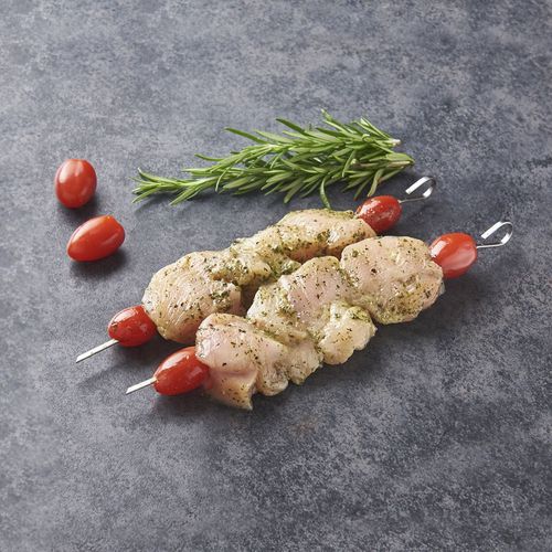 filet de poulet 75% ((Origine France)), poivrons, marinade thym saveur citron 7,5% (huile végétale de colza, arômes (aromes citron 10%, arome thym), sel, maltodextrine de pomme de terre, épices, plantes aromatiques (dont thym (2,2%)), dextrose), oignon rouge.