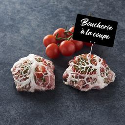 chair 75%( Epaule 3D de porc 76,7% (Origine France), Poitrine de porc 15,3% (Origine France), eau, épice label chair 3,4% (sel, sirop de glucose, sucre, arômes naturels, acidifiant : E262 (5,6%), épices, huile de tournesol, antiagglomérant :E504), crepine, emmental 6,2% (LAIT pasteurise de vache (France), sel, ferments LACTIQUES, enzyme coagulante, chlorure de calcium), tomate , bacon 3,1%(viande de porc (origine ue), sel, dextrose, sucre, extraits d'épices, arôme de fumée et/ou arômes, conservateurs: E325, E262, E301, E252, E250, ferments, fumée).