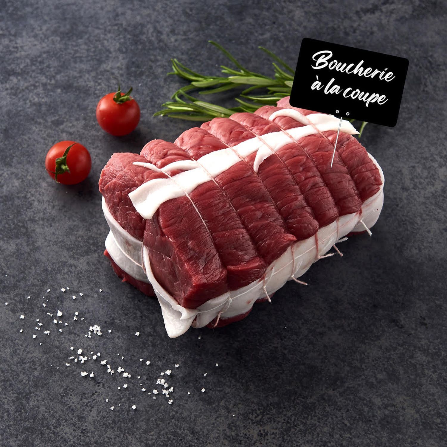 viande bovine,barde de porc. Sortez votre viande a temperature ambiante 30 minutes avant la cuisson. En four traditionnel 220°C, temps de cuisson 18 minutes/500g . En cuisson, basse temperature 80°C avec une temperature par sonde a coeur a 50°C.