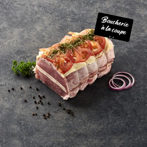 longe de porc sans os 73,5% (Origine France), emmental 14,7% (LAIT pasteurisé (origine: France), sel, ferments lactiques, coagulant), Tomate.