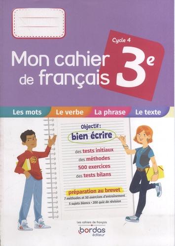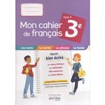 Un cahier de français méthodique et progressif pour les élèves de 3e Un cahier de français méthodique et progressif pour les altes de 3e # Mon cahier de français 3e, objectif bien écrire propose des parcours différenciés : - Des leçons très visuelles , avec des points méthode qui facilitent l'automatisation des réflexes orthographiques et grammaticaux. - De nombreux exercices variés et ludiques pour s'entraîner à son rythme et selon ses besoins. - Un test à la fin de chaque partie pour s'évaluer et mesurer ses progrès. Une préparation complète au brevet : 7 méthodes visuelles pour réussir l'épreuve, 25 exercices d'entraînement méthodique, 5 sujets blancs complets et 100 exercices autocorrectifs pour réviser en autonomie avant l'épreuve. Toutes les dictées sont en version audio et toutes les évaluations sont adaptées pour les élèves dyslexiques . _ _ _ # Le numérique pour l'enseignant : - Le cahier numérique à vidéoprojeter La version numérique projetable par l'enseignant avec la possibilité d'afficher la correction de chaque exercice. Offert si 100% des élèves de la alte sont équipés. - Le site ressources Les corrections, toutes les dictées du cahier en version audio et les évaluations de début et de fin de parties adaptées pour les DYS. Rendez-vous sur bien-ecrire-college. editions-bordas. fr # Le numérique pour l'élève : - Le cahier papier augmenté Avec Bordas FlashPage ou via des QR Codes(r), vos élèves ont un accès facile et rapide à de nombreuses ressources numériques. L'usage du smartphone n'est pas possible ? La plupart des ressources sont disponibles sur college. editions-bordas. fr _ _ _ _ _ Les engagements des éditions Bordas : Vos collègues sont nos auteurs : Nos cahiers sont pensés et conçus par des enseignants professeurs qui enseignent au quotidien dans des environnements variés. Avec leur éditeur, ils créent des outils qui permettent à leurs collègues de travailler sereinement et efficacement et aux élèves d'avancer dans leur scolarité avec confiance. L'offre numérique : Le cahier numérique enseignant est OFFERT et téléchargeable sur clé USB gratuitement aux adoptants du papier. Nous sommes éco-responsables : Les cahiers Bordas sont 100% recyclables : nous utilisons des encres vertes et des vernis non polluants. Bordas est un éditeur éco-responsable qui s'engage pour la préservation de l'environnement et utilise du papier issu de forêts gérées de manière responsable et d'autres sources contrôlées. >> En savoir plus sur notre démarche éco-responsable Nous imprimons en France : Nous veillons à réduire le plus possible les émissions de CO2 liées au transport. Ainsi, la majorité de nos ouvrages est imprimée en France. Quand cela n'est pas possible, nous imprimons dans d'autres pays d'Europe. Notre expertise au service de l'éducation : Notre engagement : mettre la rigueur et l'expertise de nos auteurs et de nos éditeurs au service de l'éducation pour favoriser la réussite de tous.