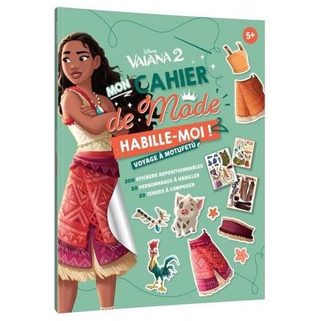 Le carnet de mode Vaiana 2 ! Avec une multitude d'autocollants pour habiller ses personnages préférés... pour un merveilleux voyage vers Motufet ! - 20 tenues complètes et plein d'accessoires pour habiller les personnages pour toutes les cérémonies royales et occasions. - 200 autocollants repositionnables : les enfants peuvent donc les déplacer, les enlever et les remettre à leur guise sur les pages plastifiées. - 8 planches d'autocollants, organisées par scène, pour les trouver plus facilement. - Les cahiers dress-up : l'activité préférée des petites filles, qui demande de la concentration et le sens de l'observation pour trouver la bonne tenue pour chaque scène. Dès 5 ans.