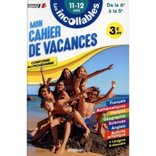 Le cahier de vacances le moins cher du marché pour réviser en s'amusant ! Un cahier de vacances complet pour réviser tout le programme et réussir son entrée en 5e - Des exercices malins aux consignes soignées et adaptées - Des corrigés détachables et des fiches-mémos visuelles - Des bilans pour s'évaluer et progresser - Des conseils de bien-être et de concentration Et pour s'amuser intelligemment ! - Une grande énigme à résoudre - Des jeux, des gages, des défis - Des pages découvertes Avec la caution Incollables - Créé par des enseignants, adopté par les enfants et les parents ! - La marque qui accompagne tous vos étés depuis 35 ans - Conforme au programme scolaire Papier issu des forêts vosgiennes, produit par les papèteries Clairefontaine. Imprimé en France.
