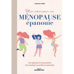 Les réponses à vos questions sur la ménopause , des solutions concrètes et naturelles pour franchir sereinement cette étape. Chaque année en France, 430 000 nouvelles femmes sont ménopausées, franchissant cette étape naturelle du cycle féminin qui marque le terme de la fertilité. Beaucoup se sentent isolées en cette période, alors qu'elles ont de nombreuses inquiétudes et n'ont généralement plus qu'une envie : oublier ce corps qui se modifie et semble ne plus fonctionner aussi bien qu'avant. Pourtant, la ménopause est une opportunité pour se le réapproprier et en prendre soin. A travers des informations simples, des tests, des exercices pratiques et plus de 50 recettes naturelles de soins et de beauté, ce cahier accompagne les femmes en répondant à leurs interrogations et en leur proposant des clefs concrètes à mettre en oeuvre pour vivre une ménopause sereine et épanouie. Quelle alimentation pour rester en forme et ne pas prendre de poids, stimuler les hormones du bien-être par des gestes simples, mettre en place un contexte favorable au sommeil, mieux traverser les émotions qui nous assaillent, réduire les bouffées de chaleur... Ce guide donne des réponses faisant appel aux techniques et aux soins naturels tels que les tisanes, les huiles essentielles, la phytothérapie, la lithothérapie, la réflexologie, la cohérence cardiaque, la respiration basifiante, le yoga, etc.
