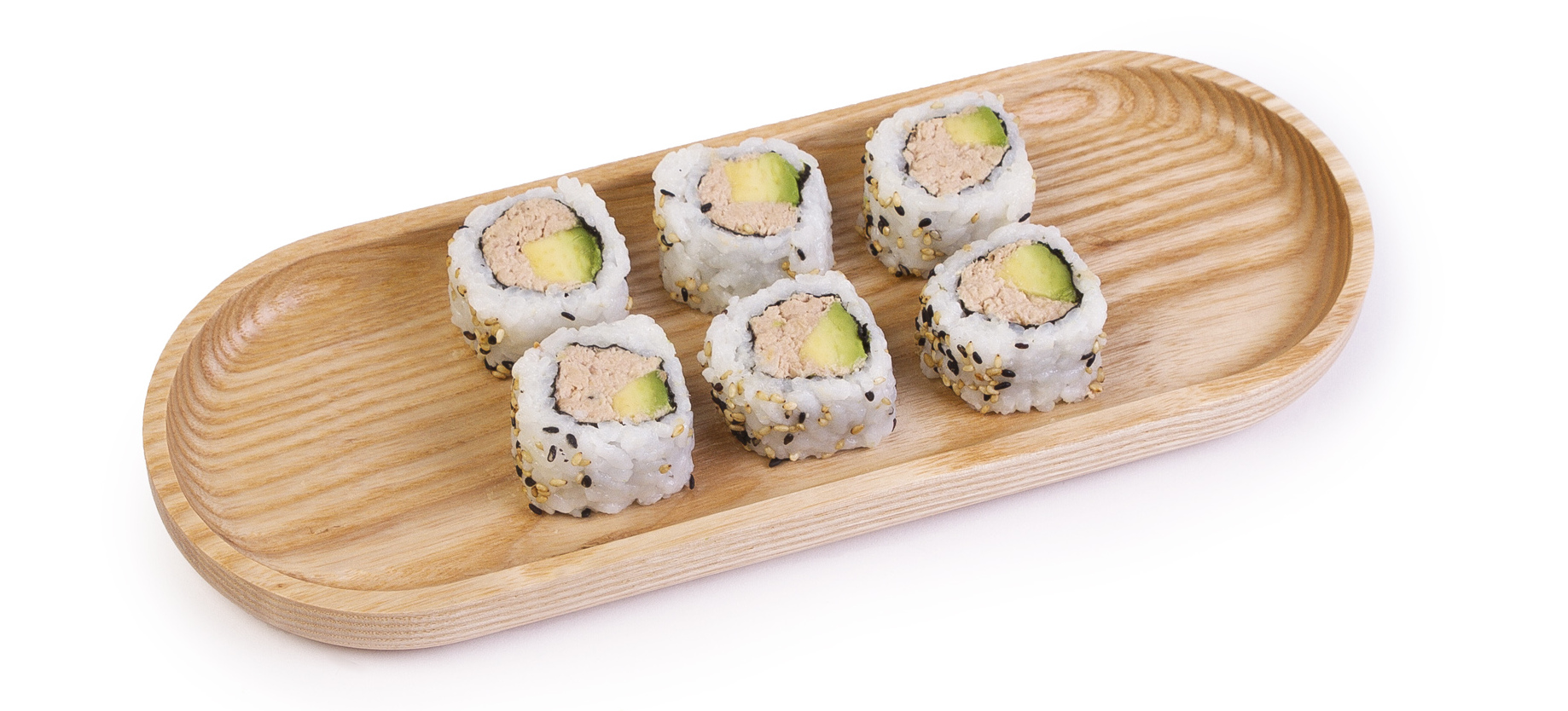 Ingrédients : Riz préparé (eau, riz, vinaigre de céréales (vinaigre d'alcool (alcool, BLÉ (GLUTEN), lies de saké, riz, maïs), sel), sucre, sel, mirin (sirop de maïs, eau, vinaigre d'alcool, extrait de riz fermenté (riz, alcool, sel, régulateur d'acidité E330), sucre, conservateurs (E211, E202)), huile de tournesol), avocat, thon au naturel (thon (POISSON), eau, sel), mayonnaise (huile de colza, eau jaune d'ŒUF salé (jaune d'ŒUF, sel), vinaigre d'alcool, MOUTARDE (eau, graines de MOUTARDE, vinaigre d'alcool, sel, acidifiant E330, conservateur E224, épices), sirop de glucose-fructose, sel, amidon modifié E1422, stabilisant E415, épaississant E412, colorant E160a), GRAINES DE SESAME, jus de citron, algue nori.