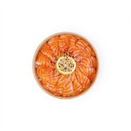 Ingrédients : Riz préparé (eau, riz, vinaigre de céréales (vinaigre d'alcool (alcool, BLÉ (GLUTEN), lies de saké, riz, maïs), sel), sucre, sel, mirin (sirop de maïs, eau, vinaigre d'alcool, extrait de riz fermenté (riz, alcool, sel, régulateur d'acidité E330), sucre, conservateurs (E211, E202)), huile de tournesol), saumon (POISSON).