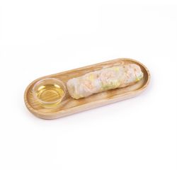Ingrédients : Crevettes cuites (crevette (CRUSTACÉS), eau, sel, correcteur d'acidité E331), salade, vermicelles de riz (riz, eau), sauce nuoc nam (eau, sucre, sauce poisson (extrait d'anchois (POISSON), eau, sel, sucre), vinaigre de céréales (vinaigre d'alcool (alcool, BLÉ (GLUTEN), lies de saké, riz, maïs), sel)), galette de riz (amidon de tapioca, farine de riz, eau, sel), carotte, pousse de SOJA, coriandre, menthe.