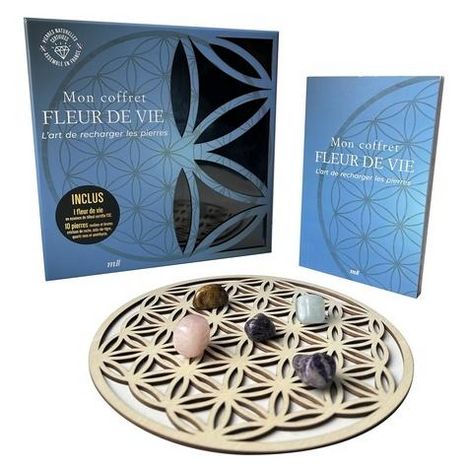 MON COFFRET FLEUR DE VIE. L'ART DE RECHARGER LES PIERRES. AVEC UN LIVRE D'INITIATION, 10 PIERRES ROULEES ET BRUTES ET UNE FLEUR DE VIE EN BOIS, Gustin Céleste