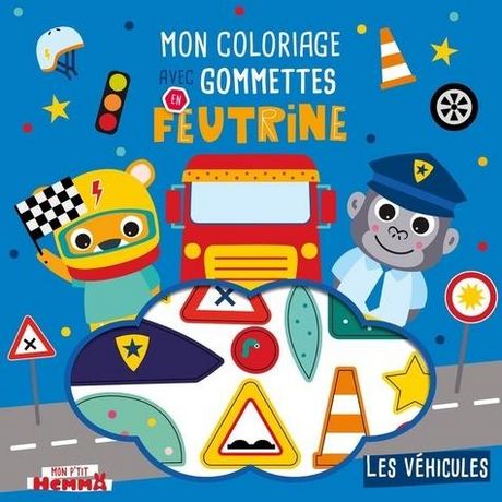 Un livre de coloriage avec des gommettes en feutrine pour un effet tout doux aux couleurs de la collection Mon P'tit Hemma Un beau livre au format carré pour colorier les véhicules de Mon P'tit Hemma . Des coloriages à compléter avec des autocollants et des gommettes en feutrine pour un effet tout