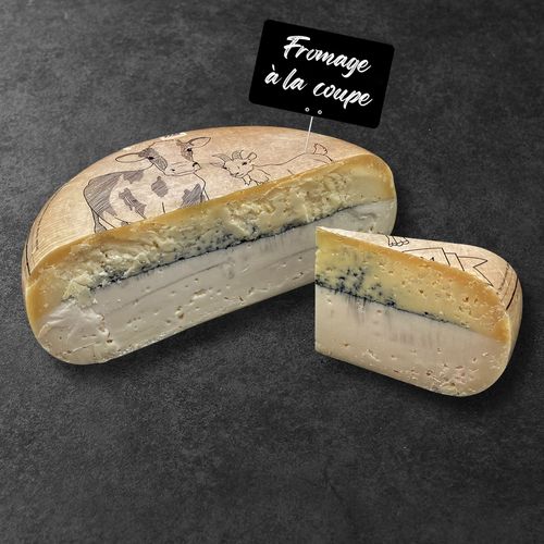 Fromage à pâte pressée non cuite au lait thermisé de vache et de chèvre, température inférieure a la pasteurisation.
