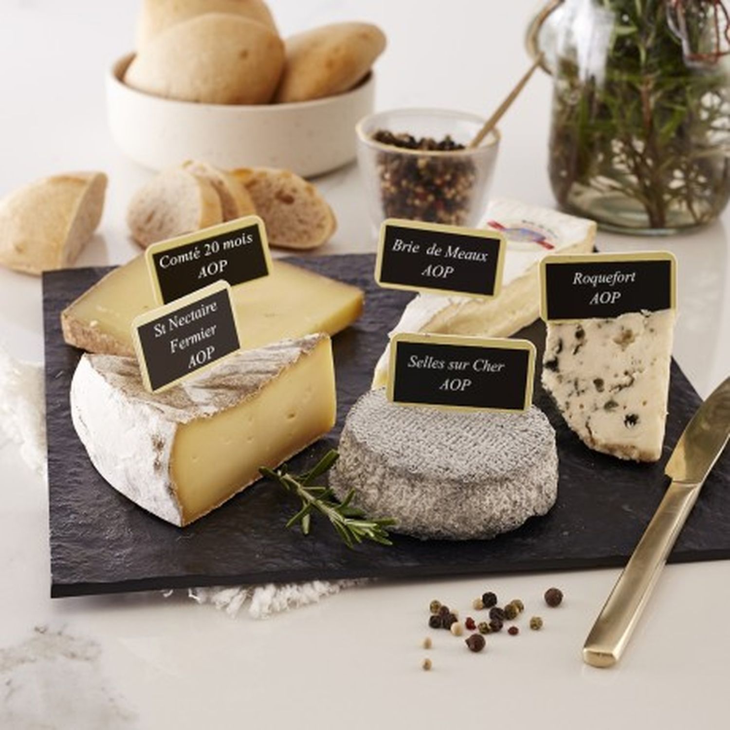 Brie de Meaux AOP* 3/4 affiné 20% (Fromagerie RENARD GILLARD 11 petite Rue 55290 Biencourt Sur Orge-Fromagerie RENARD GILLARD 18 Route de Chuelles 45320 Courtenay.LAIT cru de vache (origine france), sel, présure, ferments), Comte AOP 20 Mois 20% (FROMAGERIES ARNAUD - Avenue de la gare - 39800 POLIGNY.Fromage à pâte pressée cuite au lait cru de vache.LAIT cru de vache, ferments LACTIQUES, présure, sel), Saint Nectaire* fermier AOP 20% (Affine par SA Paul Dischamp 63530 Sayat.LAIT cru de vache, sel, ferments, présure), Selles sur cher AOP 20% (LAIT cru de chèvre, ferments LACTIQUES et d'affinage, sel, colorant: charbon végétal), roquefort aigle noir* AOP 20% (SAS Carles-6 Av de Lauras - 12250 Roquefort.LAIT cru de brebis, pénicillium roqueforti, ferments LACTIQUES, présure, sel).*Ce fromage est au lait cru.Il est deconseille auxpopulations fragiles dont les jeunes enfants,de le consommer.