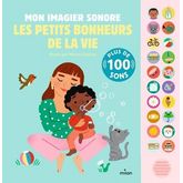 Le chant des oiseaux au petit matin, le bruit d'un bisou qui claque, le feu de cheminée, le chant de la cigale en été, le rire d'un enfant qui joue avec son papa, le chant du paon au parc, le chat qui ronronne dans la maison, le bruit du ruisseau à la montagne, le bruit de la pluie contre la fenêtre... Dans ce nouvel imagier sonore grand format, l'enfant s'émerveillera à écouter plus de 100 sons reflétant l'environnement sonore associé aux petits bonheurs qu'il peut vivre au quotidien. Un imagier encyclopédique Par le biais de diverses séquences (le réveil, l'heure du bain, la promenade, Noël, les saisons, le printemps, la fête d'anniversaire...), l'enfant associe des sons, des images et des mots qui évoquent les moments de bonheur et de plaisir qu'il peut vivre au quotidien et tout au long de l'année. Un apport émotionnel positif L'écoute des sons associés à des moments agréables stimulera la mémoire sensorielle et émotive du tout-petit et lui procurera ainsi des émotions positives. Une fabrication adaptée aux tout-petits Le grand format cartonné et le boîtier doté de 20 puces sonores faciles à déclencher permettent à l'enfant une écoute et une lecture en toute autonomie.