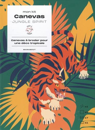 MON KIT CANEVAS JUNGLE SPIRIT. CANVEVAS A BRODER POUR UNE DECO TROPICALE - COFFRET AVEC 1 TOILE A CANEVAS, 1 AIGUILLE, 7 ECHEVETTES ET 1 LIVRET, Marabout
