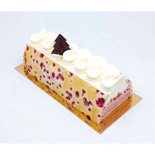 Biscuit garni de mousse au mascarpone, de mousse à la mascarpone et de brisures de framboises - surgelé