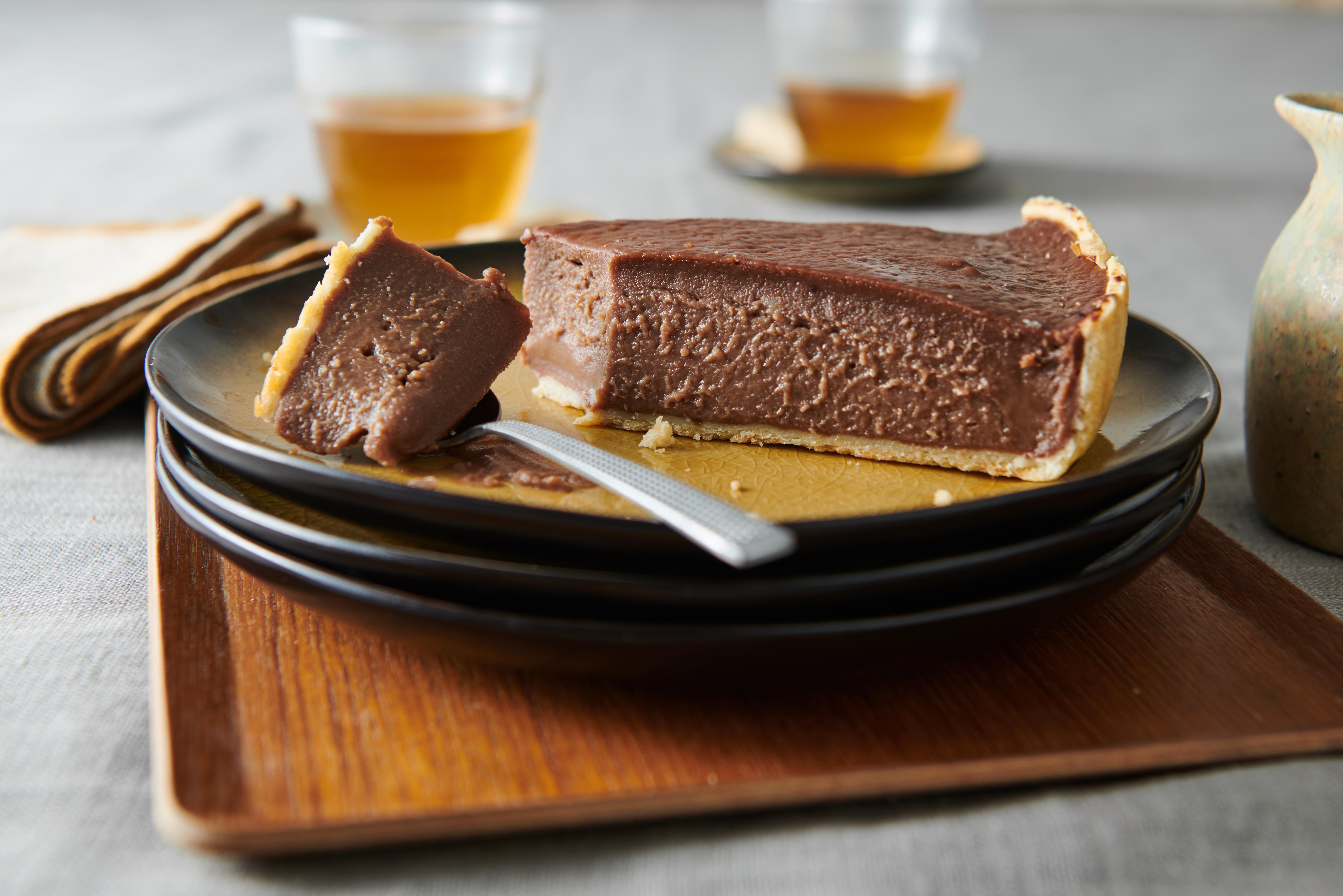 LAIT écrémé (origine : France), sucre, semoule de BLÉ dur, BEURRE, chocolat 6,4% (sucre, pâte de cacao, beurre de cacao, émulsifiant : lécithine de SOJA, arôme vanille), OEUF, eau, amidon modifié, farine de BLÉ, sel.
